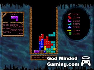 If you're familiar with Tetris (and you probably are), there's not much to say about SABA's gameplay that you don't already know - it's a game where you're trying to score points by clearing rows of blocks. To make these rows, you rotate or nudge tetrominoes as they fall from above. Eventually, the gameplay area becomes filled with leftover pieces, and the game ends.