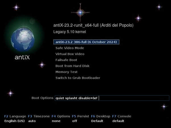 A look at the AntiX Boot menu