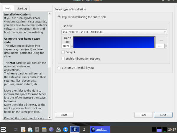 Screenshot of the AntiX installer