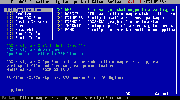 Much like a Linux distro, FreeDOS comes equipped with a package manager that lets you select and install software from pre-made packages. In this case, the package manager is called FDimples, and it's much easier to use than you'd expect.